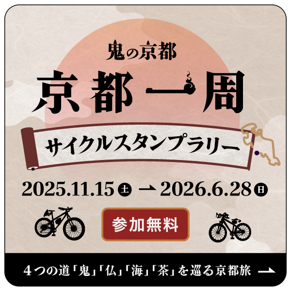 京都府内各地を自転車で巡る期間型サイクリングイベント「鬼の京都 京都一周サイクルスタンプラリー 2025」を、2025年11月15日(土)~2026年6月28日(日)の期間に開催します。 「鬼」「仏」...